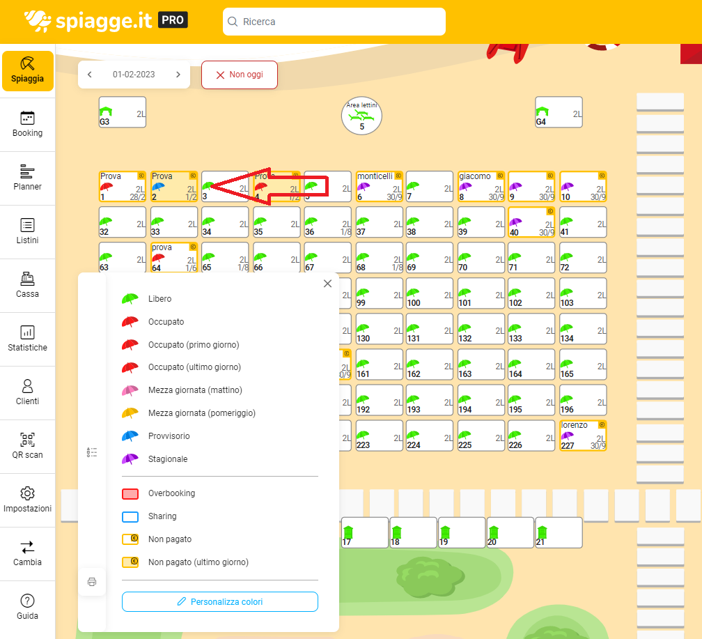 Per evidenziare una prenotazione come provvisoria, è sufficiente entrare dentro la rispettiva schermata di prenotazione e cliccare sul pulsante “Temporaneo”, sotto al numero della postazione: