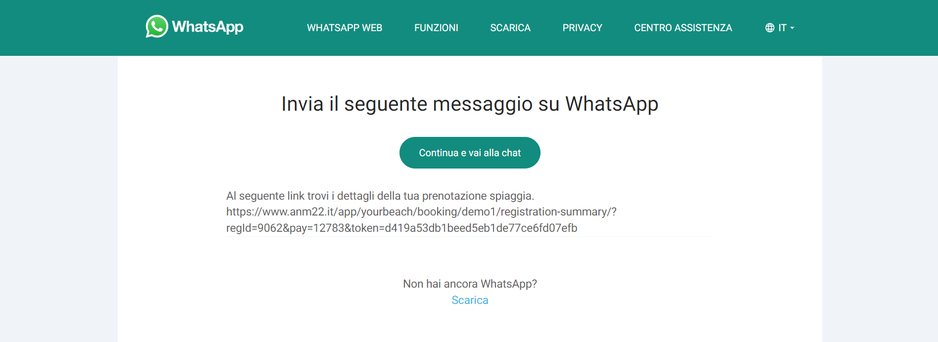 - Segui la procedura guidata di Whatsapp, cliccando “Continua e vai alla chat”;