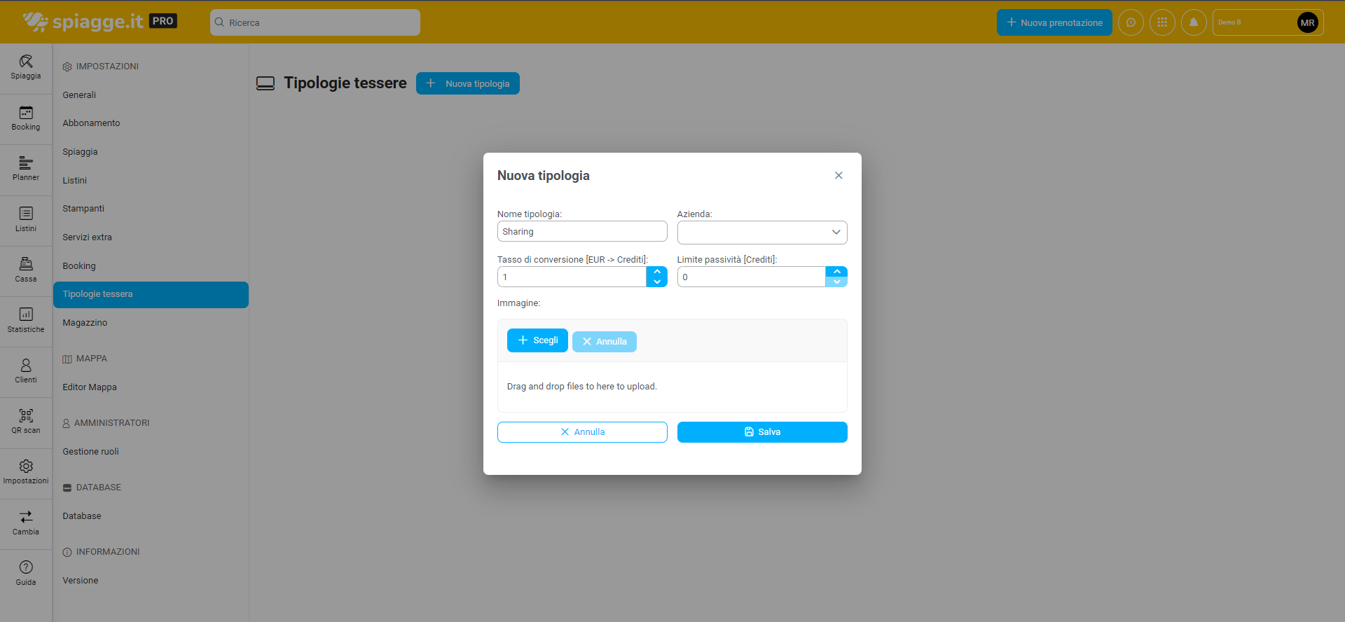 Cliquez sur le bouton correspondant, après avoir sélectionné la carte que vous venez de créer dans la liste et défini le crédit à reconnaître (qui peut être fixe ou en pourcentage), puis sauvegardez.
