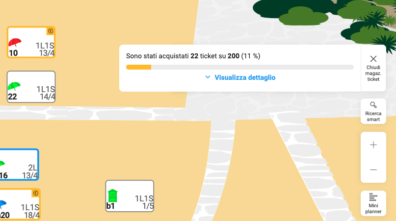 Se utilizzi i Ticket d’ingresso, nella sezione spiaggia hai un nuovo pulsante “Magazzino Ticket” con cui puoi visualizzare velocemente e con un solo click i ticket giornalieri venduti e la capacità residua della tua struttura.