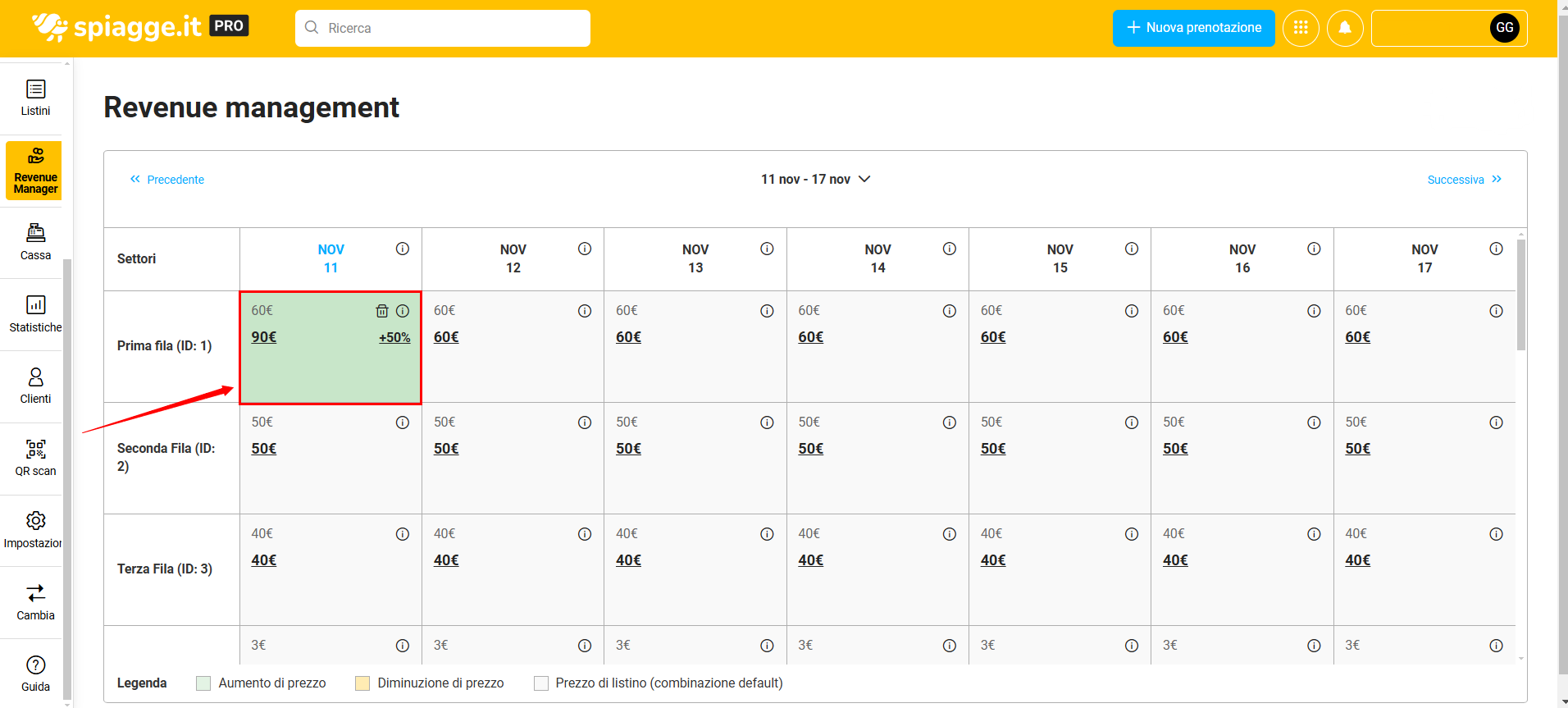 - Cliquez sur la case correspondante (par exemple, tarif au premier rang pour le 11 novembre).